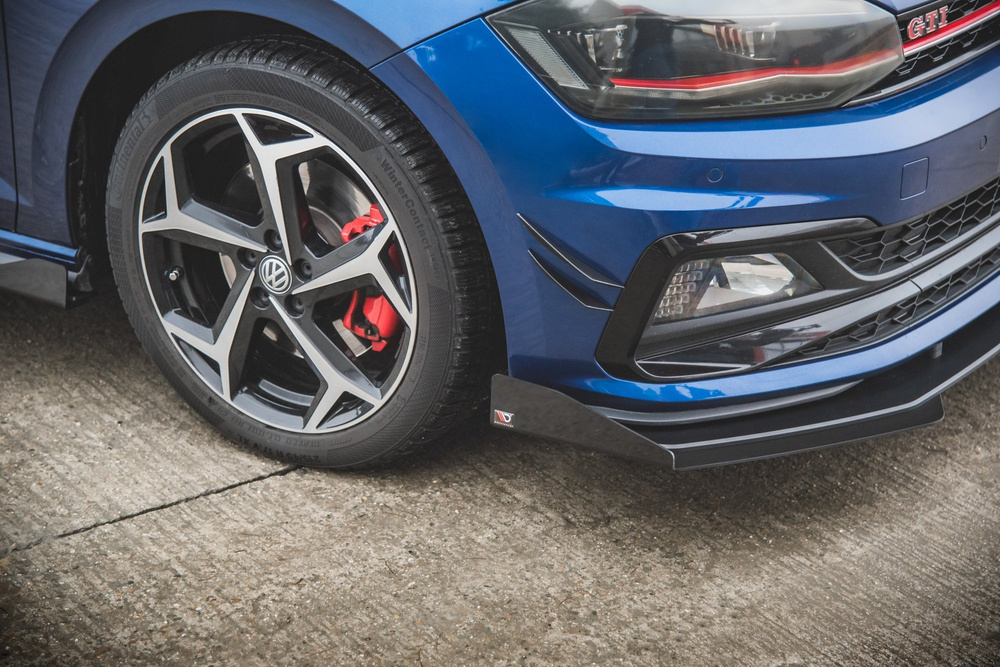 Maxton Design "Racing durability" spoiler pod přední nárazník s rohovými splittery pro Volkswagen Polo GTI Mk6, plast ABS bez povrchové úpravy, s červenou linkou