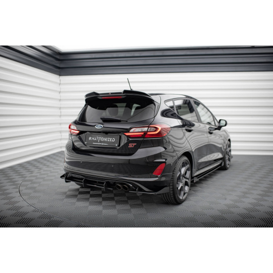 Maxton Design "Racing durability" spoiler pod zadní nárazník s postranními křidélky pro Ford Fiesta ST Mk8, plast ABS bez povrchové úpravy, s černou a červenou linkou