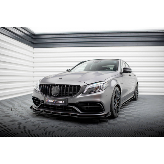 Maxton Design rohové spoilery pod přední nárazník pro Mercedes třída C W205 Facelift/63 AMG/Sedan/Estate, černý lesklý plast ABS