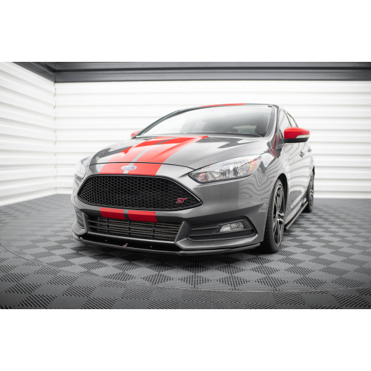 Maxton Design spoiler pod přední nárazník pro Ford Focus ST Mk3 Facelift, černý lesklý plast ABS