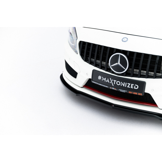 Maxton Design spoiler pod přední nárazník pro Mercedes třída A W176/AMG-Line, černý lesklý plast ABS