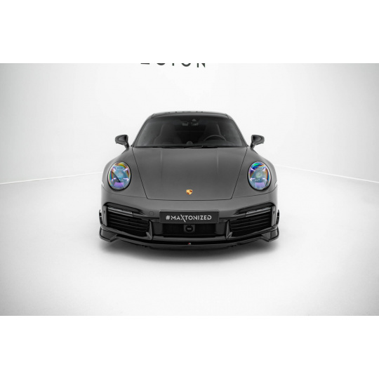Maxton Design spoiler pod přední nárazník pro Porsche 911 992 Turbo S, černý lesklý plast ABS, Sport Package