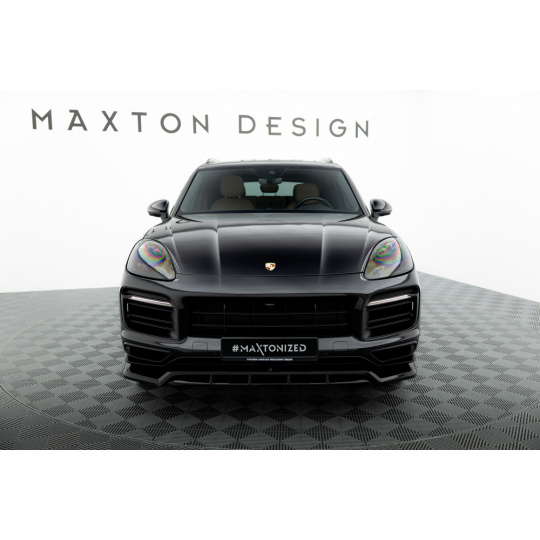 Maxton Design spoiler pod přední nárazník pro Porsche Cayenne Mk3 Sport Design, černý lesklý plast ABS