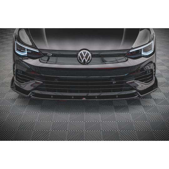 Maxton Design spoiler pod přední nárazník s křidélky ver.2 pro Volkswagen Golf R Mk8, černý lesklý plast ABS