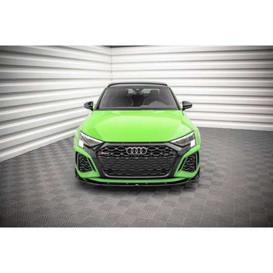 Maxton Design spoiler pod přední nárazník ver.2 pro Audi RS3 8Y, černý lesklý plast ABS, pouze Sedan