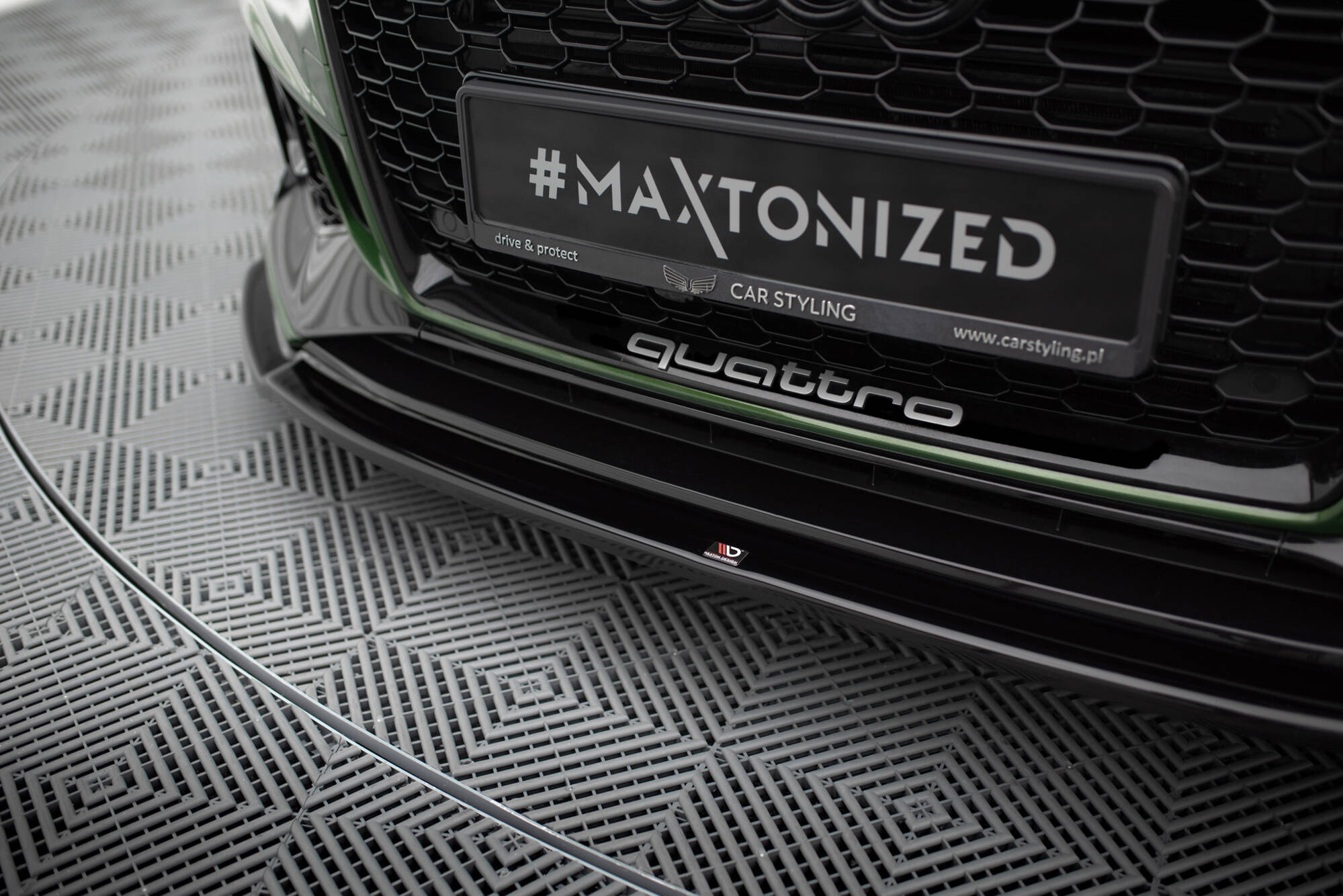 Maxton Design spoiler pod přední nárazník ver.2 pro Audi RS4 B9, černý lesklý plast ABS