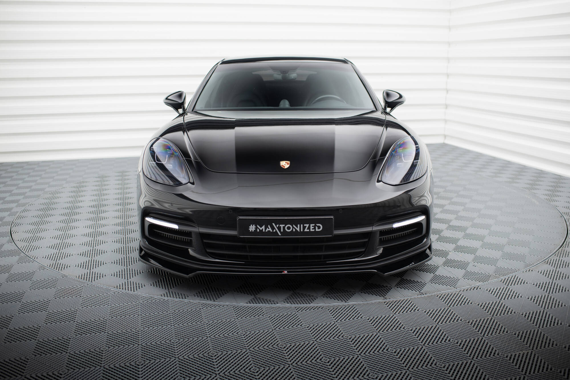 Maxton Design spoiler pod přední nárazník ver.2 pro Porsche Panamera 4S 971, 971 E-Hybrid, černý lesklý plast ABS