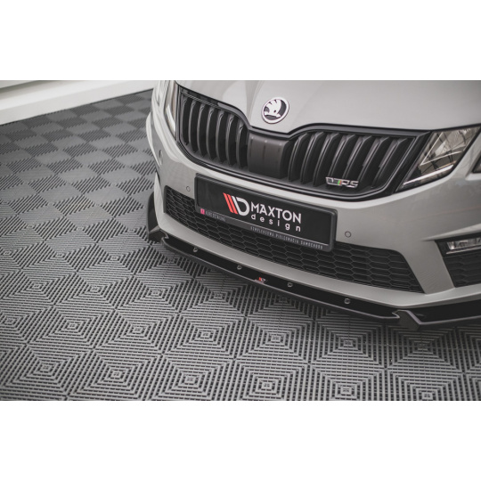 Maxton Design spoiler pod přední nárazník ver.2 pro Škoda Octavia RS Mk3 Facelift, černý lesklý plast ABS