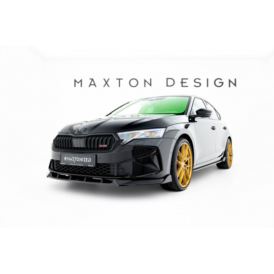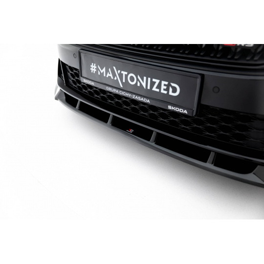 Maxton Design spoiler pod přední nárazník ver.2 pro Škoda Octavia RS Mk4 Facelift, černý lesklý plast ABS, Liftback / Combi