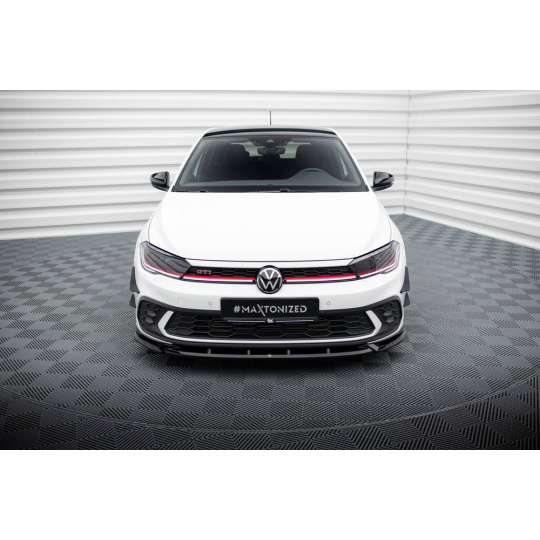 Maxton Design spoiler pod přední nárazník ver.2 pro Volkswagen Polo GTI Mk6 Facelift, černý lesklý plast ABS