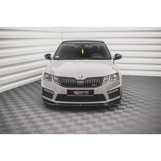 Maxton Design spoiler pod přední nárazník ver.3 pro Škoda Octavia RS Mk3 Facelift, černý lesklý plast ABS