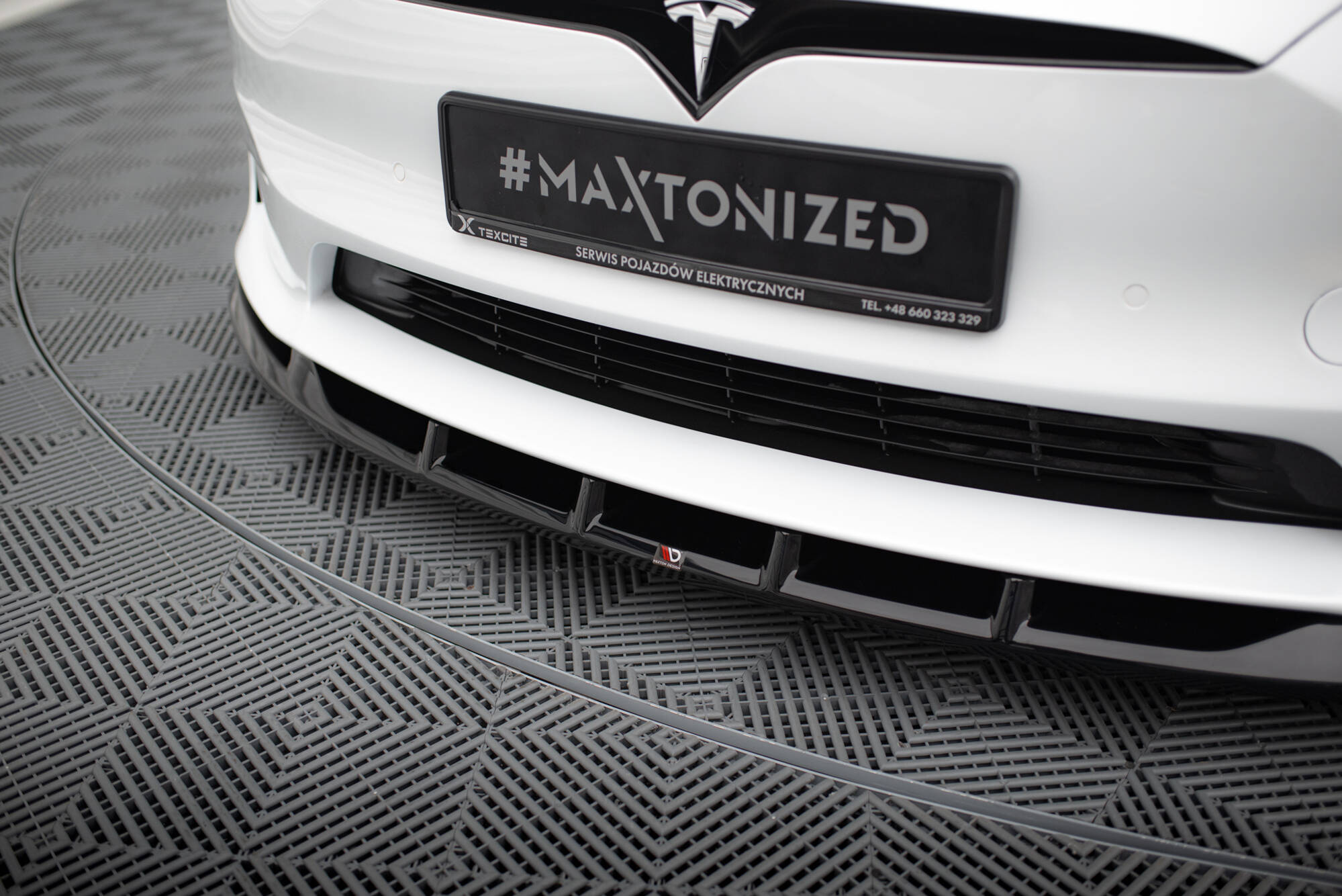 Maxton Design spoiler pod přední nárazník ver.3 pro Tesla Model S Plaid Mk1 Facelift, černý lesklý plast ABS