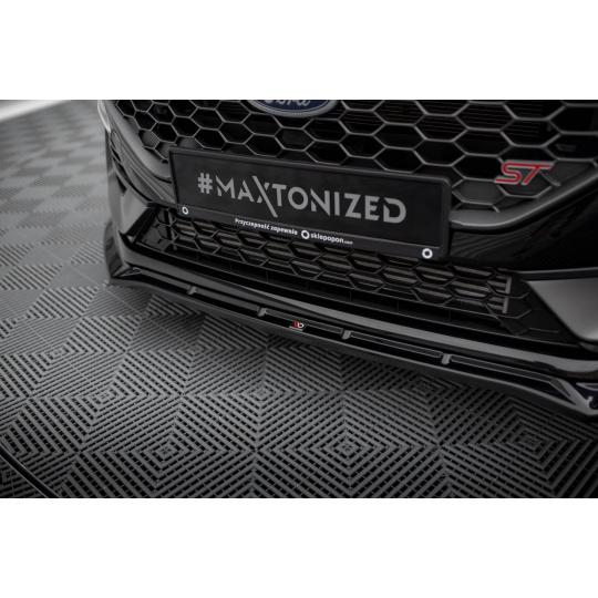 Maxton Design spoiler pod přední nárazník ver.4 s křidélky pro Ford Fiesta ST Mk8 Facelift, černý lesklý plast ABS