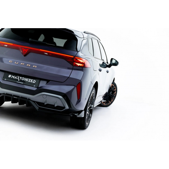 Maxton Design spoiler pod zadní nárazník s žebrováním a křidélkami v.3 pro Cupra Terramar Mk1, černý lesklý plast ABS