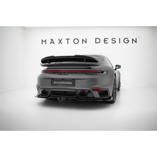 Maxton Design spoiler pod zadní nárazník s žebrováním pro Porsche 911 992 Turbo S, černý lesklý plast ABS, Sport Package