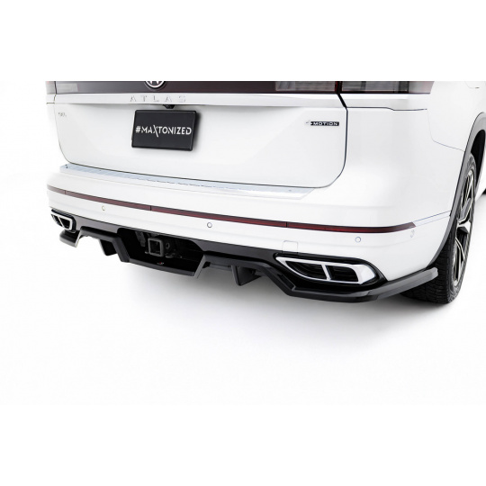 Maxton Design spoiler pod zadní nárazník s žebrováním pro Volkswagen Atlas R-Line Mk1 Facelift 2, černý lesklý plast ABS