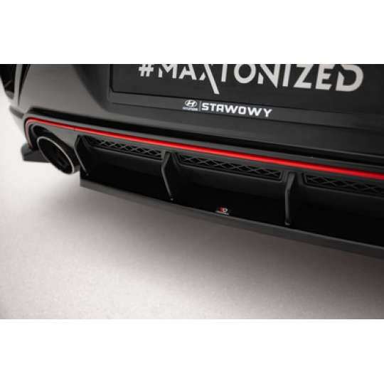 Maxton Design středový spoiler pod zadní nárazník pro Hyundai Veloster N Mk2, černý lesklý plast ABS