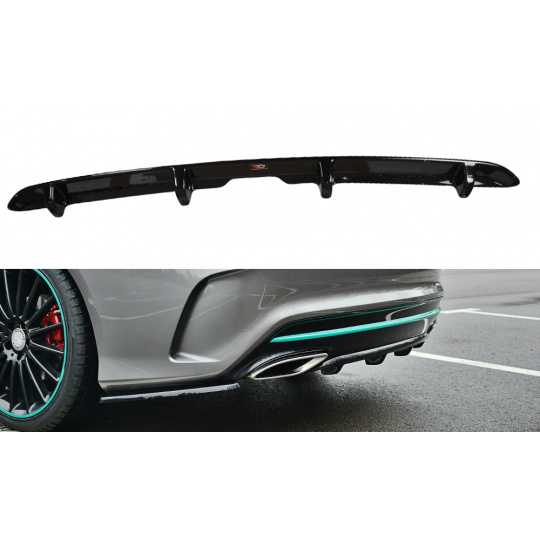 Maxton Design středový spoiler pod zadní nárazník pro Mercedes CLA C 117 Facelift/AMG-Line, černý lesklý plast ABS