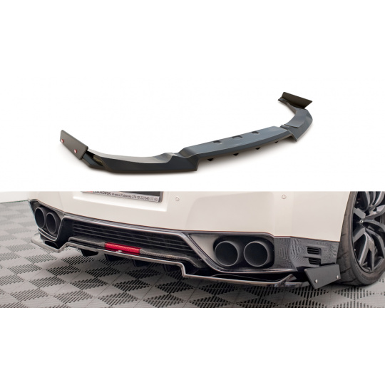 Maxton Design středový spoiler pod zadní nárazník s křidélky pro Nissan GT-R R35 Facelift, černý lesklý plast ABS