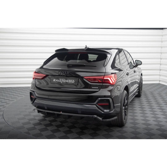 Maxton Design středový spoiler pod zadní nárazník s žebrováním pro Audi Q3 Sportback F3, černý lesklý plast ABS