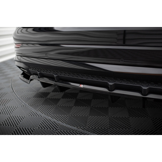 Maxton Design středový spoiler pod zadní nárazník s žebrováním pro Audi Q8 Mk 1 FL, černý lesklý plast ABS, S-Line