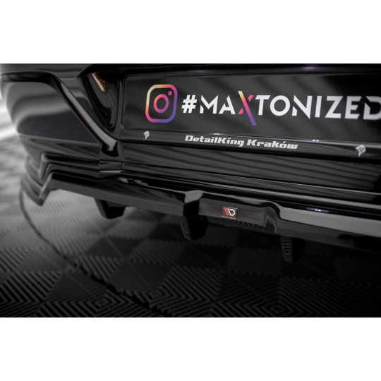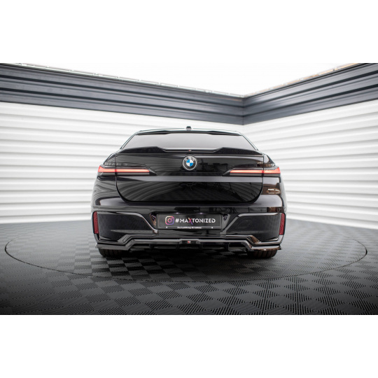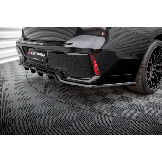 Maxton Design středový spoiler pod zadní nárazník s žebrováním pro BMW řada 7 G70 M-Pack, černý lesklý plast ABS