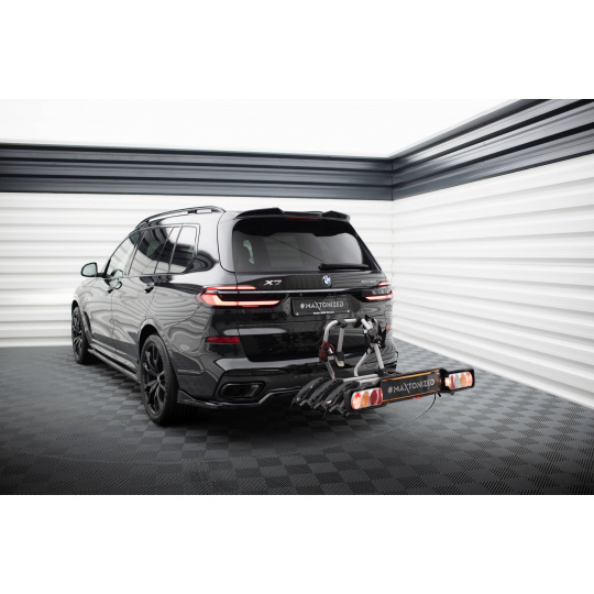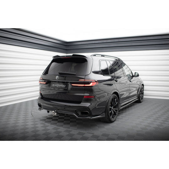 Maxton Design středový spoiler pod zadní nárazník s žebrováním pro BMW X7 G07 Facelift M-Pack, černý lesklý plast ABS