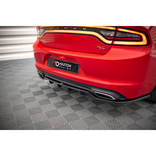 Maxton Design středový spoiler pod zadní nárazník s žebrováním pro Dodge Charger Mk7 Facelift RT, černý lesklý plast ABS