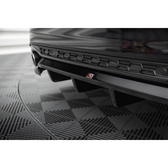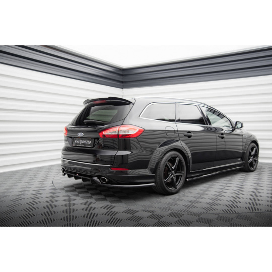 Maxton Design středový spoiler pod zadní nárazník s žebrováním pro Ford Mondeo ST-Line Mk4 Facelift, černý lesklý plast ABS, Combi
