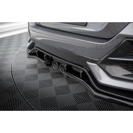 Maxton Design středový spoiler pod zadní nárazník s žebrováním pro Honda Civic Mk10 Sport, černý lesklý plast ABS