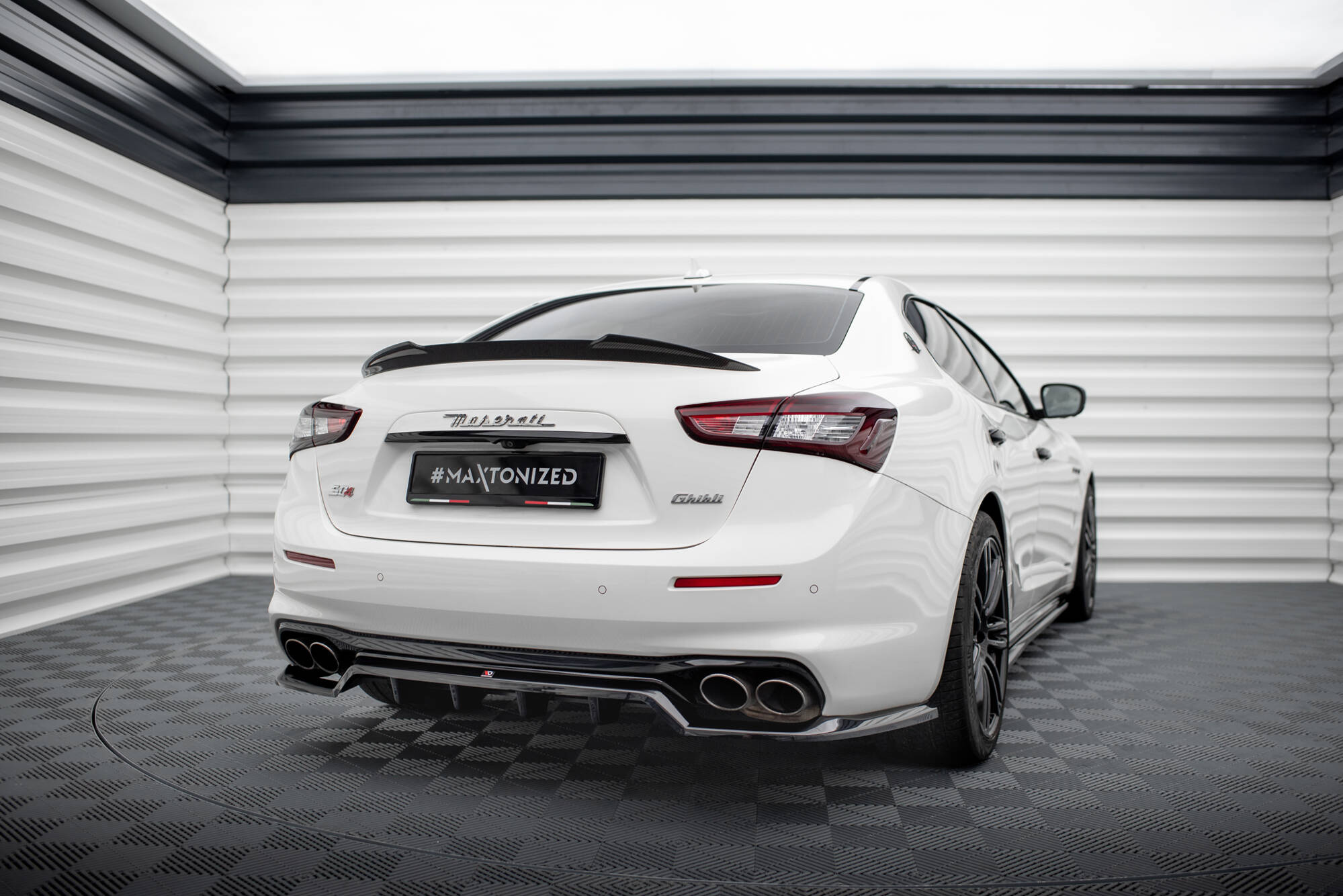 Maxton Design středový spoiler pod zadní nárazník s žebrováním pro Maserati Ghibli Mk3 Facelift, černý lesklý plast ABS