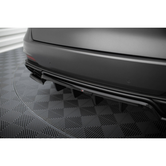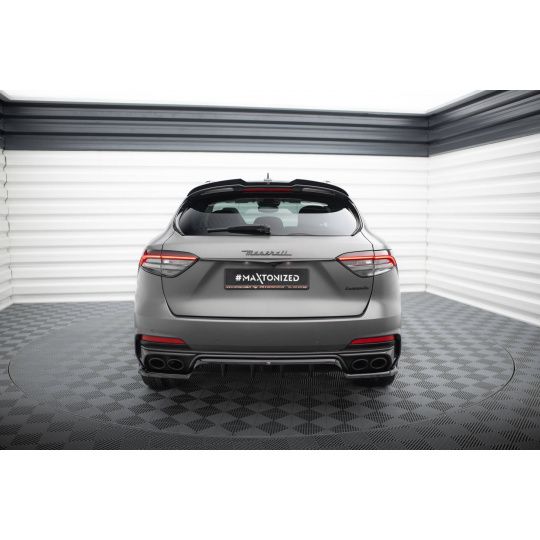 Maxton Design středový spoiler pod zadní nárazník s žebrováním pro Maserati Levante Mk1 Trofeo, černý lesklý plast ABS