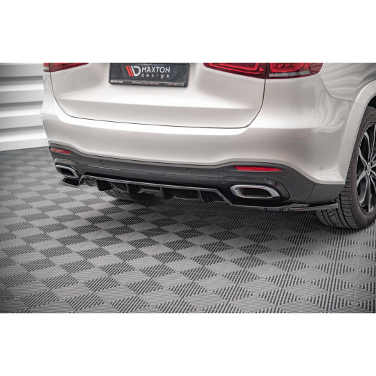 Maxton Design středový spoiler pod zadní nárazník s žebrováním pro Mercedes GLS X167 /AMG- Line, černý lesklý plast ABS