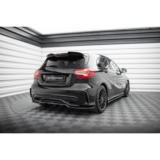 Maxton Design středový spoiler pod zadní nárazník s žebrováním pro Mercedes třída A W176 Facelift AMG-Line, černý lesklý plast ABS