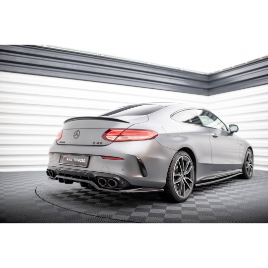 Maxton Design středový spoiler pod zadní nárazník s žebrováním pro Mercedes třída C W205 Facelift/43 AMG/Coupe, černý lesklý plast ABS
