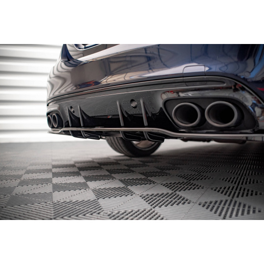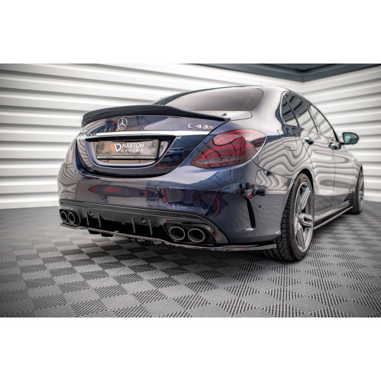 Maxton Design středový spoiler pod zadní nárazník s žebrováním pro Mercedes třída C W205 Facelift/43 AMG Sedan, černý lesklý plast ABS