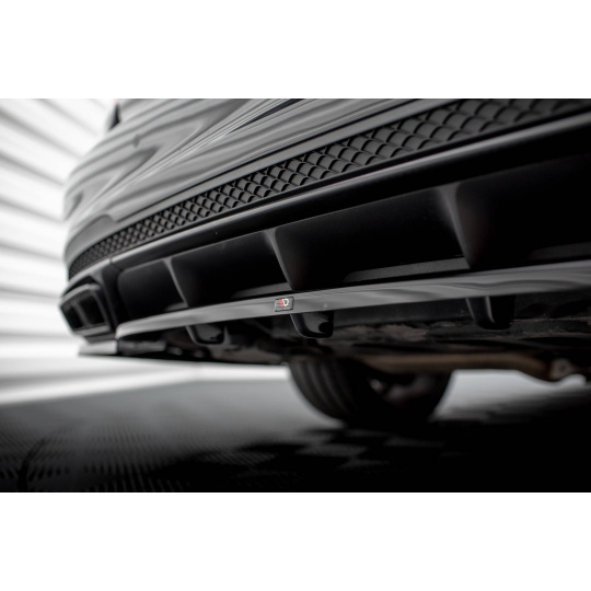Maxton Design středový spoiler pod zadní nárazník s žebrováním pro Mercedes třída E W212 Facelift/Sedan/E63 AMG, černý lesklý plast ABS