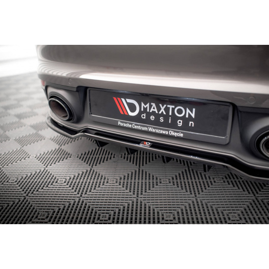 Maxton Design středový spoiler pod zadní nárazník s žebrováním pro Porsche 911 992 /Carrera 4S, černý lesklý plast ABS
