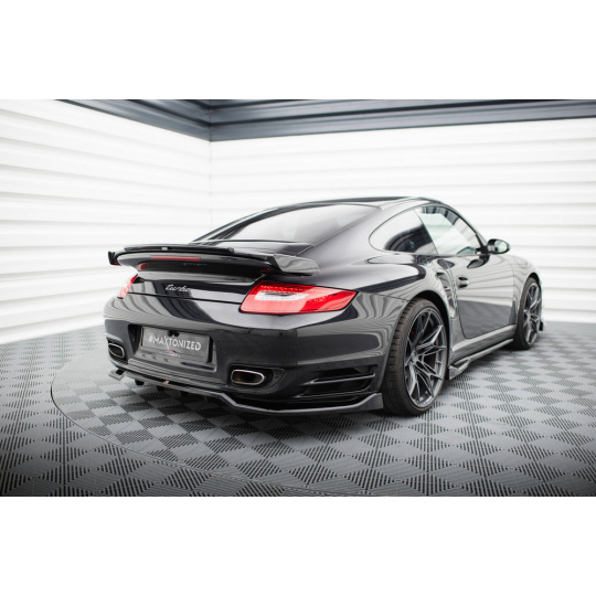 Maxton Design středový spoiler pod zadní nárazník s žebrováním pro Porsche 911 997 Turbo, černý lesklý plast ABS