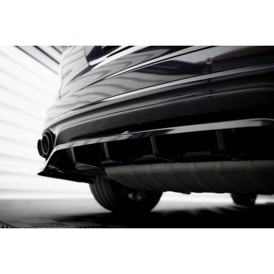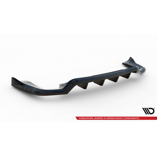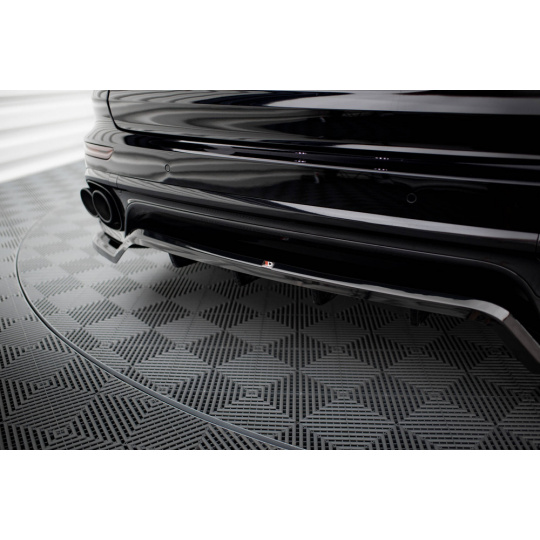 Maxton Design středový spoiler pod zadní nárazník s žebrováním pro Porsche Cayenne Mk2 Facelift, černý lesklý plast ABS
