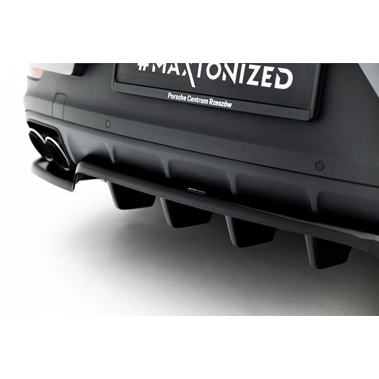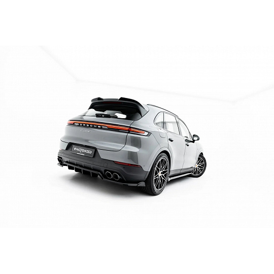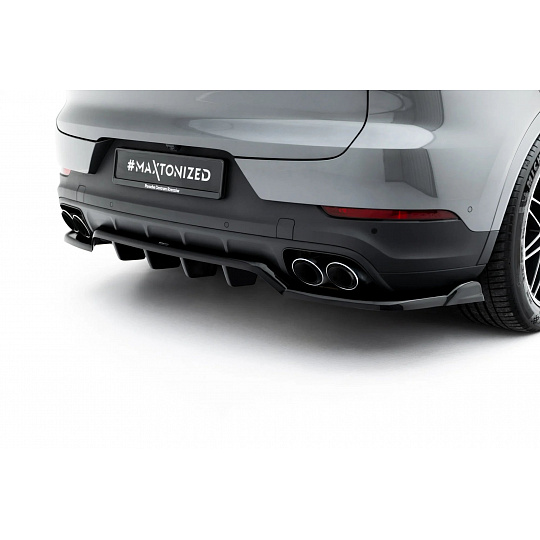 Maxton Design středový spoiler pod zadní nárazník s žebrováním pro Porsche Cayenne Mk3 Coupe, černý lesklý plast ABS
