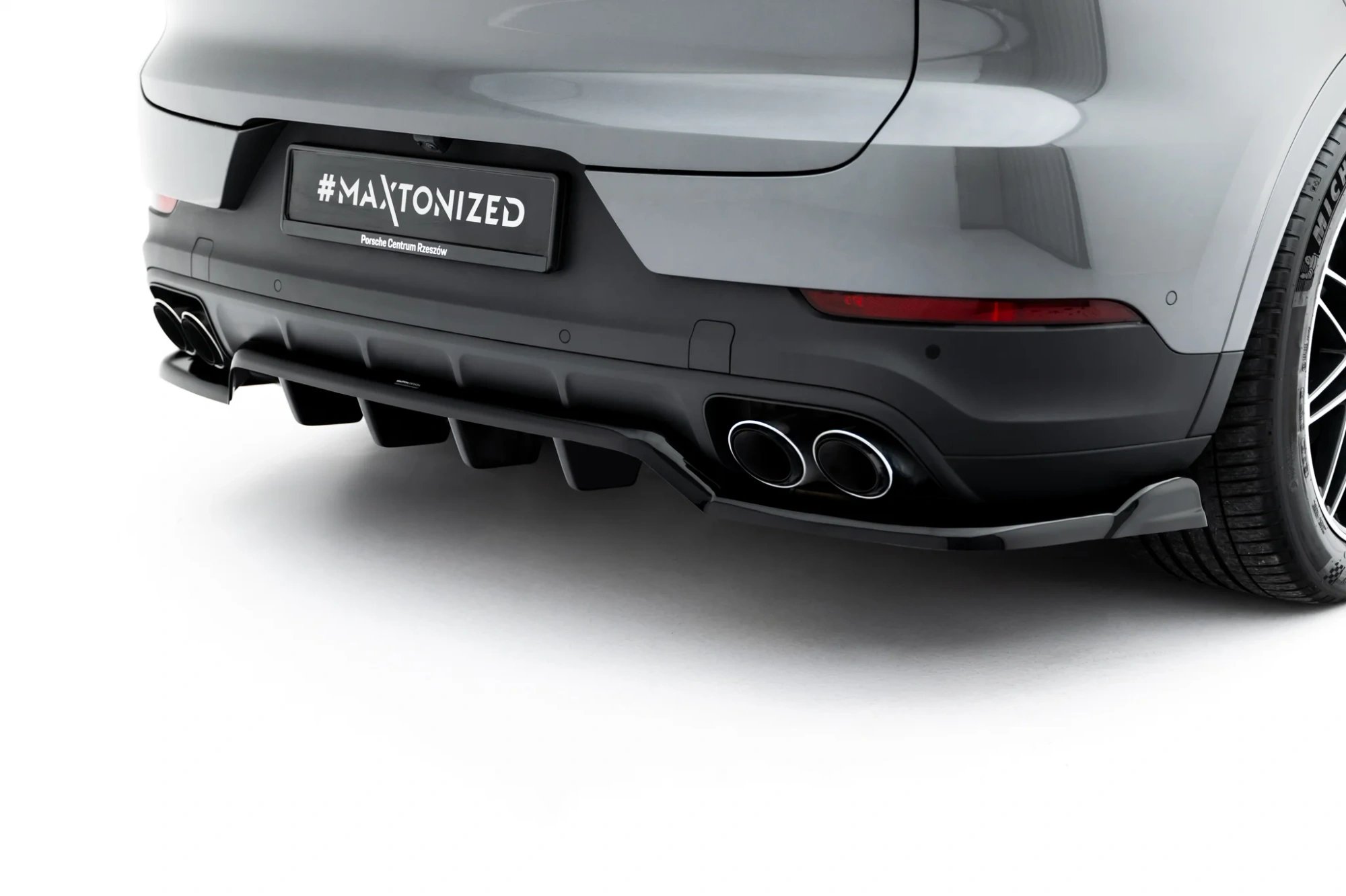 Maxton Design středový spoiler pod zadní nárazník s žebrováním pro Porsche Cayenne Mk3 Coupe, černý lesklý plast ABS