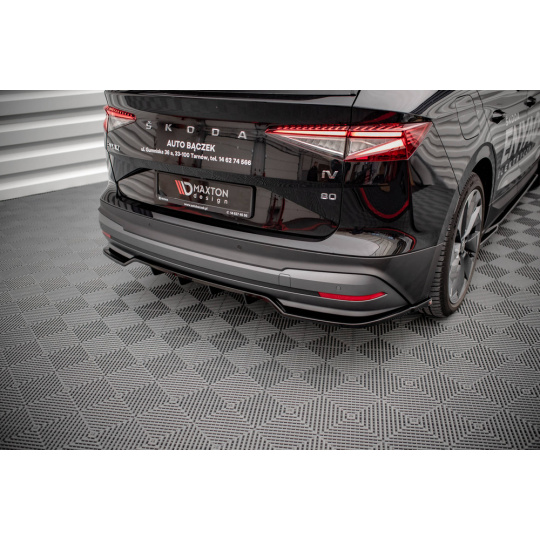 Maxton Design středový spoiler pod zadní nárazník s žebrováním pro Škoda Enyaq iV Mk1, černý lesklý plast ABS