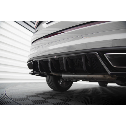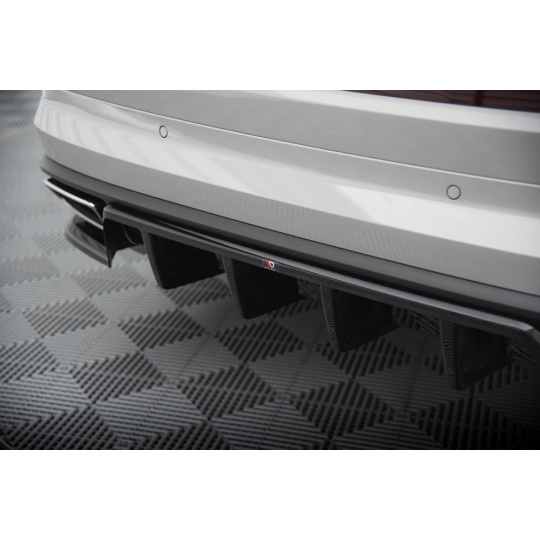 Maxton Design středový spoiler pod zadní nárazník s žebrováním pro Škoda Kodiaq RS Facelift, černý lesklý plast ABS
