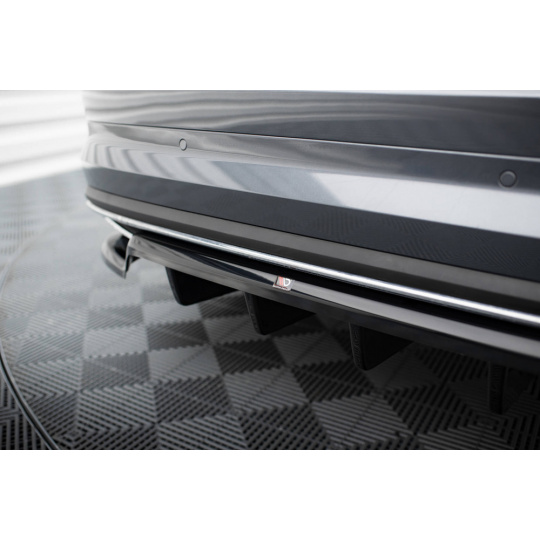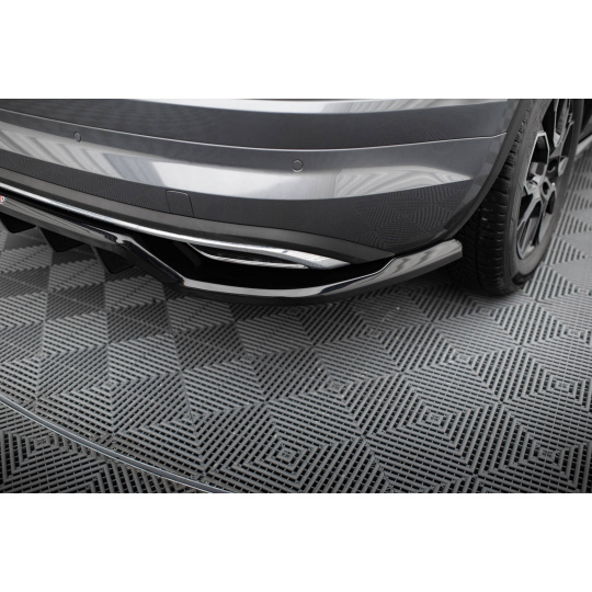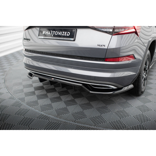 Maxton Design středový spoiler pod zadní nárazník s žebrováním pro Škoda Kodiaq Sportline Facelift, černý lesklý plast ABS