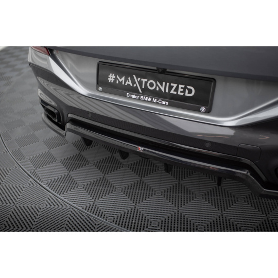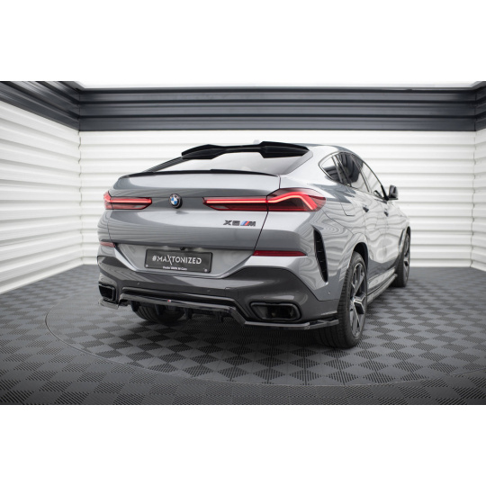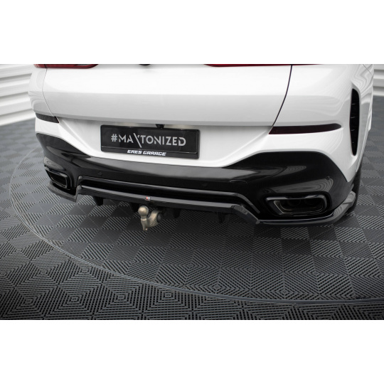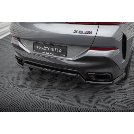 Maxton Design středový spoiler pod zadní nárazník s žebrováním v.1 pro BMW X6 G06 Facelift M-Pack, černý lesklý plast ABS