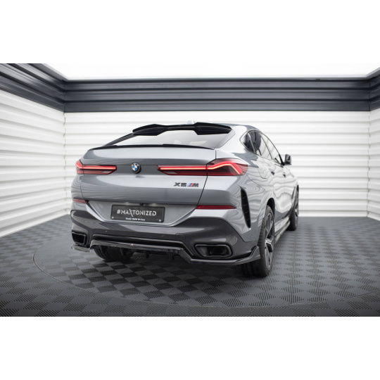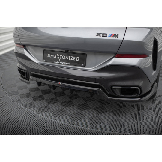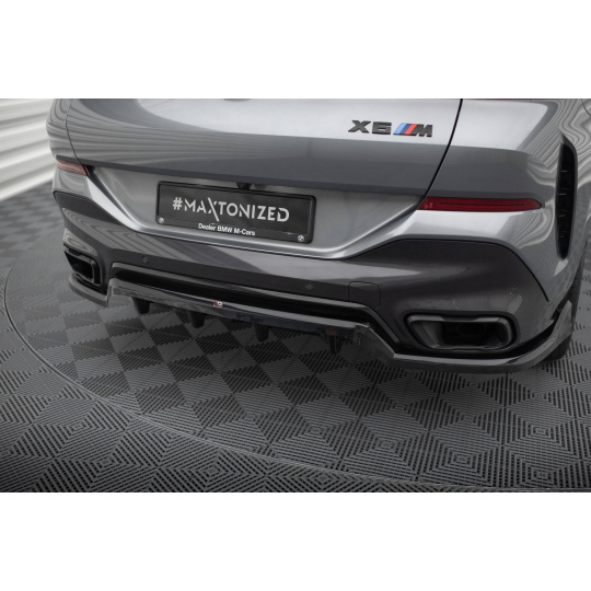 Maxton Design středový spoiler pod zadní nárazník s žebrováním v.2 pro BMW X6 G06 Facelift M-Pack, černý lesklý plast ABS