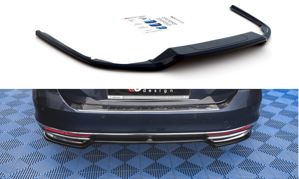 Maxton Design středový spoiler zadního nárazníku pro Volkswagen Passat Mk8 (B8), černý lesklý plast ABS
