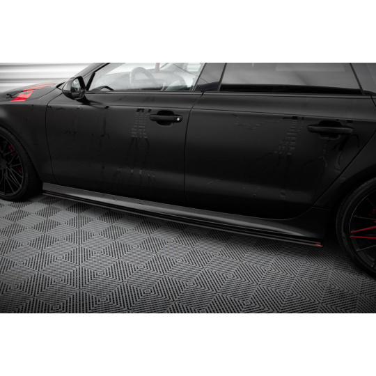 Maxton Design "Street Pro" difuzory pod boční prahy pro Audi A7 C7, plast ABS bez povrchové úpravy, RS7 look, s červenou linkou