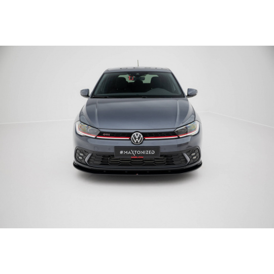 Maxton Design "Street Pro" spoiler pod přední nárazník pro Volkswagen Polo GTI Mk6 Facelift, plast ABS bez povrchové úpravy, s černou a červenou linkou